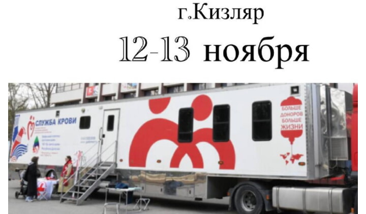 Республиканский центр крови проводит в Кизляре двухдневную акцию «День донора». Мобильный комплекс будет работать с 12 по 13 ноября у центральной городской больницы с 09:00 до 13:00.