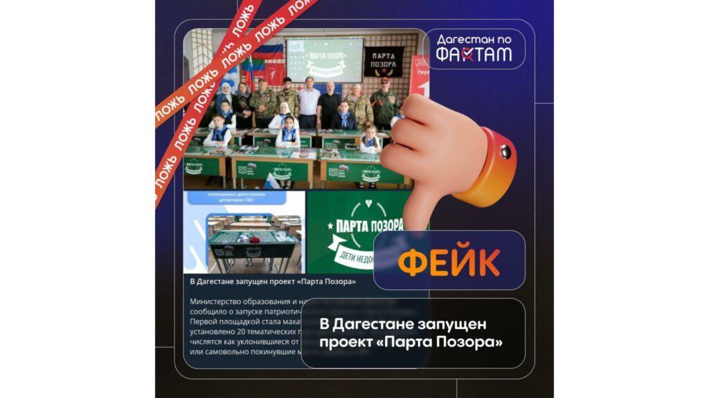 Глава Центра управления регионом РД Исрафил Исрафилов опроверг распространяемую в дагестанском сегменте Telegram информацию о якобы запущенном в школах региона проекте «Парта Позора». По словам Исрафилова, эти сообщения и изображения, ни что иное – как фейк.