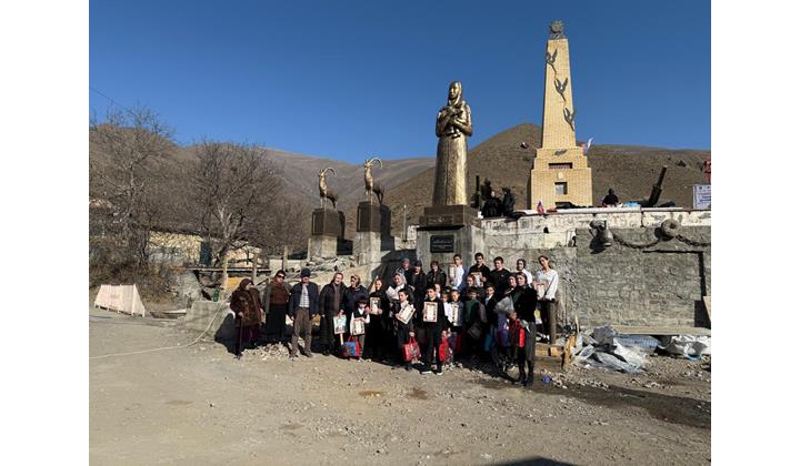 На снимке мемориальный памятник посвященный всем «Матерям России — Мать и дитя» высотой 8 метров, сооруженный народным методом в с. Киче Рутульского района РД — РФ