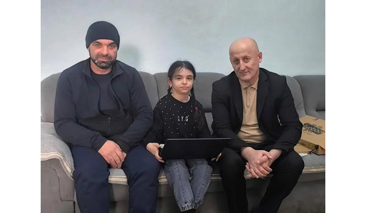 Первый заместитель министра юстиции РД Сергей Караченцев приобрел для девочки ноутбук, а от его имени подарок Кариме вручил заместитель министра Муслим Курамагомедов.