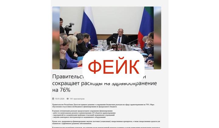 Уважаемые дагестанцы! В адрес администраторов ТГ-каналов и в СМИ начал поступать очередной фейк о деятельности Правительства республики. В этот раз злоумышленники, используя фотографию с правительственного совещания 2023г., сфабриковали фейковое сообщение о сокращении расходов на здравоохранение.