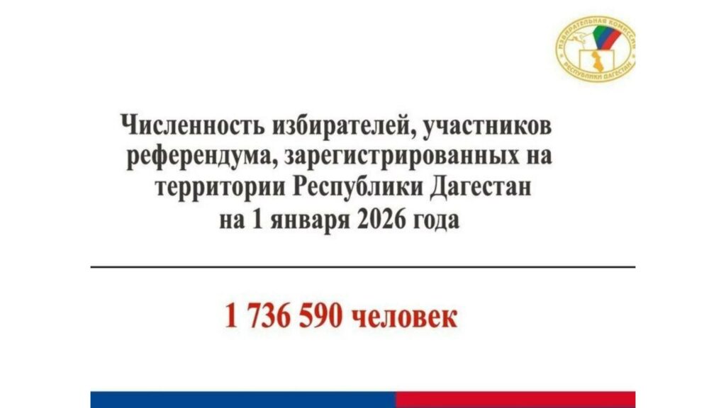 По состоянию на 1 января 2026 года число избирателей и участников референдумов, зарегистрированных в Республике Дагестан, составило 1 736 590 человек. Эти данные опубликованы Избирательной комиссией республики.