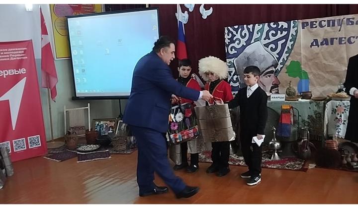 После церемонии вручения подарков  школьники посмотрели документальный краткометражный фильм «Матери Дагестана», посвященный подвигу матерей, чьи сыновья сегодня защищают Родину в СВО,  режиссёр фильма   Председатель Правления  Дагестанского   регионального  отделения  ООБФ «Российский  детский  фонд», заместитель Председателя ОС при  Агентстве по информации и печати РД, Абдулжелилова Г.Б..