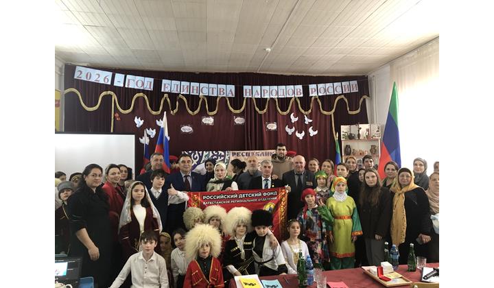 23 января 2026 г.  в МБОУ «СОШ № 15 им. Цахаева З.З.»  г.Махачкалы Республики  Дагестан  прошла  торжественная  благотворительная  акция, приуроченная 2026 Году единства  народов  России,  организованная Дагестанским   региональным отделением ООБФ  «Российский  детский  фонд» с  детьми  участников   СВО.