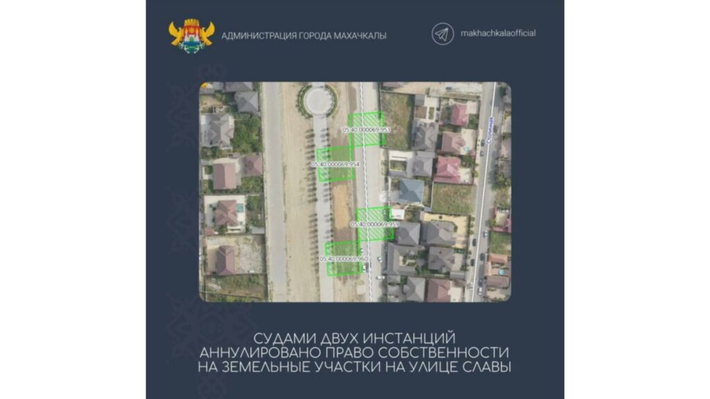 Шестнадцатым арбитражным апелляционным судом подтверждено решение Арбитражного суда Республики Дагестан, согласно которому права собственности на четыре земучастка общей площадью почти 1,8 тысячи квадратных метров на улице Славы были аннулированы.