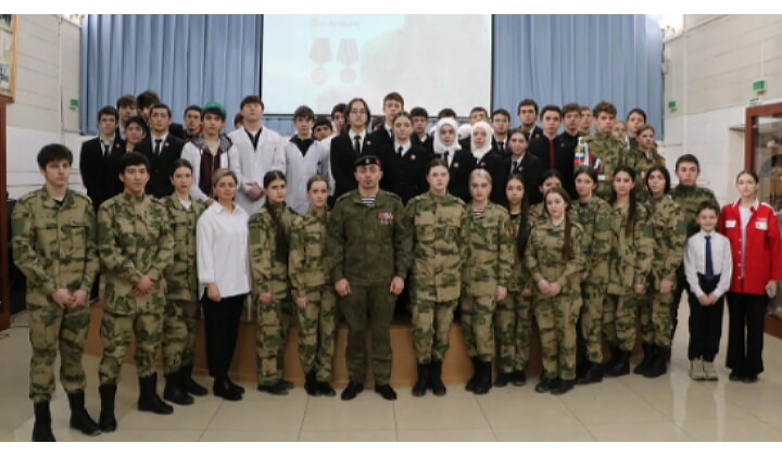 Айгум Ногаев подробно рассказал, как в ходе боев весной 2022 года спас семерых сослуживцев из горящей боевой техники, получив при этом множественные осколочные ранения. С интересом слушали и подробности того, как российские разведчики четверо суток держали оборону здания в полном окружении ВСУ и «Азова» (террористическая организация. Запрещена на территории РФ). Как отметил Ногаев, несмотря на превосходящие силы противника, разведчикам удалось выполнить поставленную задачу. Он рекомендовал школьникам и студентам прочитать книгу Герейхана Аджиева «Рокот-12. Забытый герой Мариуполя».