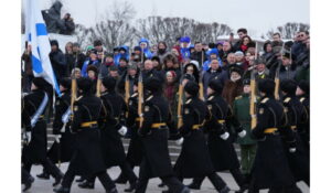 В составе колонны к монументу «Мать-Родина» прошли и главнокомандующий ВМФ, адмирал флота Герой России Александр Моисеев, представители командования Ленинградского военного округа, Северо-Западного округа войск национальной гвардии, руководители правоохранительных органов, участники специальной военной операции, представители Межпарламентской ассамблеи государств-участников СНГ, сотрудники дипломатических представительств зарубежных государств, члены молодежных и общественных организаций.
