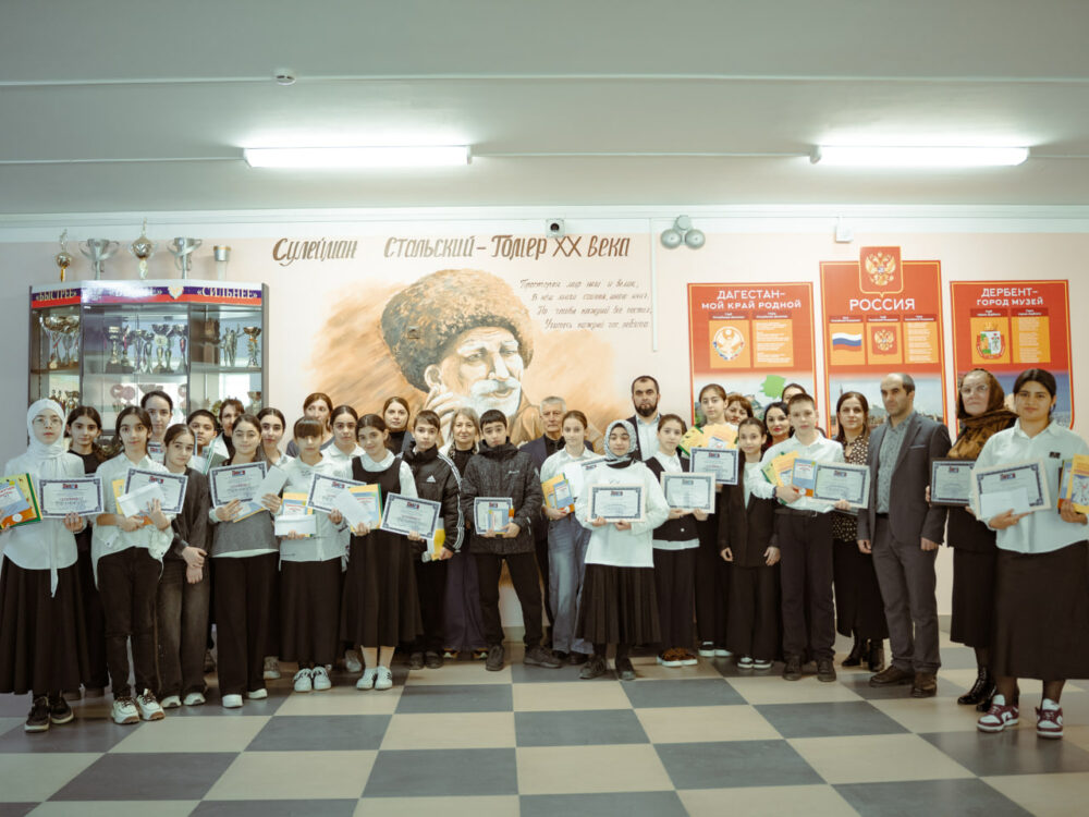 На следующий день эстафету принял Дербент, где на площадке школы №21 имени Сулеймана Стальского два десятка школьников состязались в знаниях родного языка.