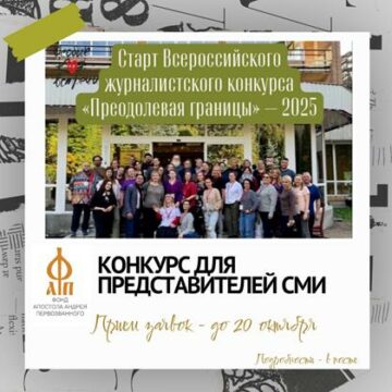 Приглашаем к участию во Всероссийском конкурсе ко Всемирному дню ментального здоровья (10 октября) Уважаемые коллеги! Приглашаем журналистов региональных и местных СМИ принять участие во Всероссийском журналистском конкурсе «Преодолевая границы» Фонда Андрея Первозванного. Авторы 20 лучших материалов (в любом формате: текст, видео, аудио) получат премии в размере 15 000 рублей (до вычета налога). Организаторы: Фонд Андрея...