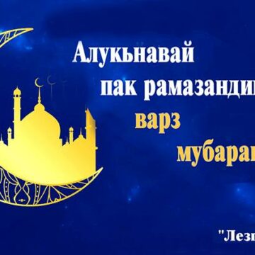 Ассалам алейкум, играми стхаярни вахар! Квез виридаз рамазандин варз мубаракрай! Къуй куьне и вацра хуьдай сивер, гудай садакьаяр, ийидай вири ибадатар Аллагьди кьабулрай. Амин! Рамазандин варз Атана вун берекат гваз Уьмметдиз вири. Кьабулна вун гьерекат кваз РикIери чими. Йиса садра къведай мугьман Я вун гьакьван хуш! АцIурзавай мергьяматдив Руьгьер хьанвай буш. Ибадатра мусурманар Тахьурай зайиф....