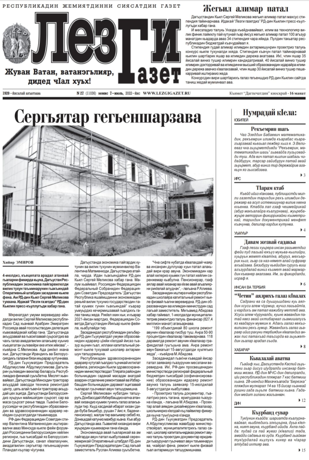 Лезги газет №27 2022 г.