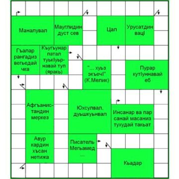 ЛГ»-дин 8-нумрадиз акъатай кроссчайнворддин жавабар: 1. Гелир. 2. Руг. 3. Гуьлуьт. 4. Тарлан. 5. Нева. 6. Алвер. 7. Ракьар. 8. Рагъ. 9. Гъукь. 10. Кьасумхуьр. 11. Рук. 12. Кихел. 13. Лукьман. 14. Ник. 15. Кимкиме. 16. Етим. 17. Марс. 18. Стха. 19. Азархана. 20. Азраил. 21. Ливан. 22. Носов. 23. Верг.